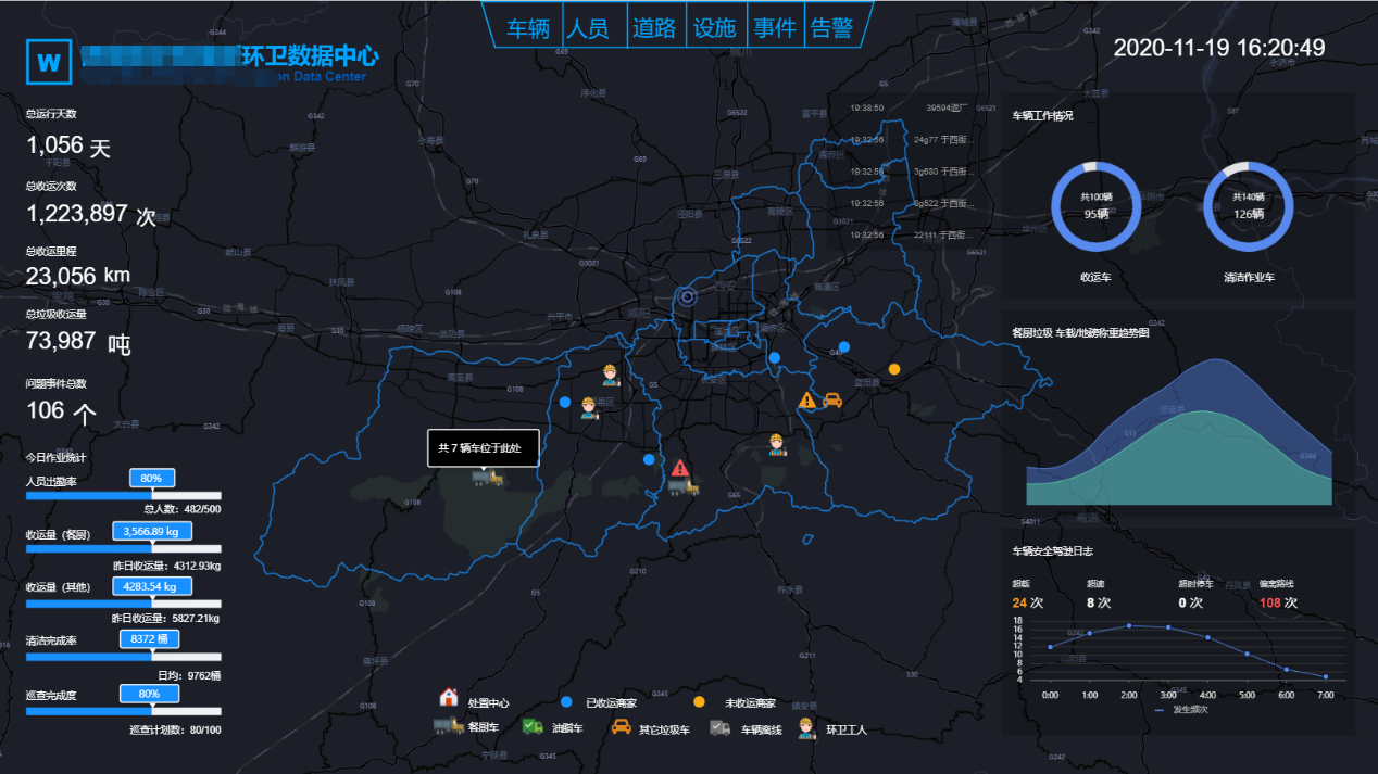 管理人员可以快速、实时掌握城市所有垃圾收运作业人员、车辆的现场作业状况,对收运过程中如抛洒、滴漏或过程中注水等不规范行为做到科学研判。