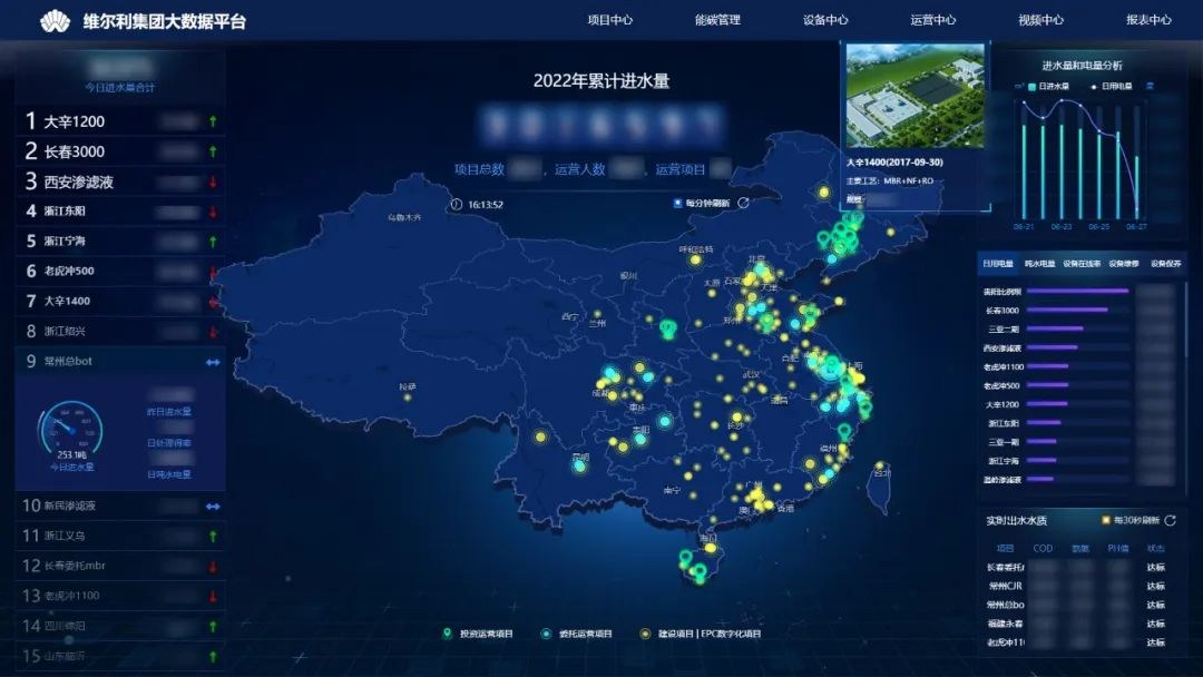 牧云数据为维尔利环保集团提供基于工业互联网、人工智能、大数据和云平台技术建设的大数据运营管理平台,管控维尔利全国300多个渗滤液、水务、固废等环保工程项目,集成项目大屏展示、远程工控、生产管理、能耗管理、设备管理、运营数据分析等丰富功能,日常业务实现90%线上化处理、减少70%运维工作量,综合运营成本降低20%以上。