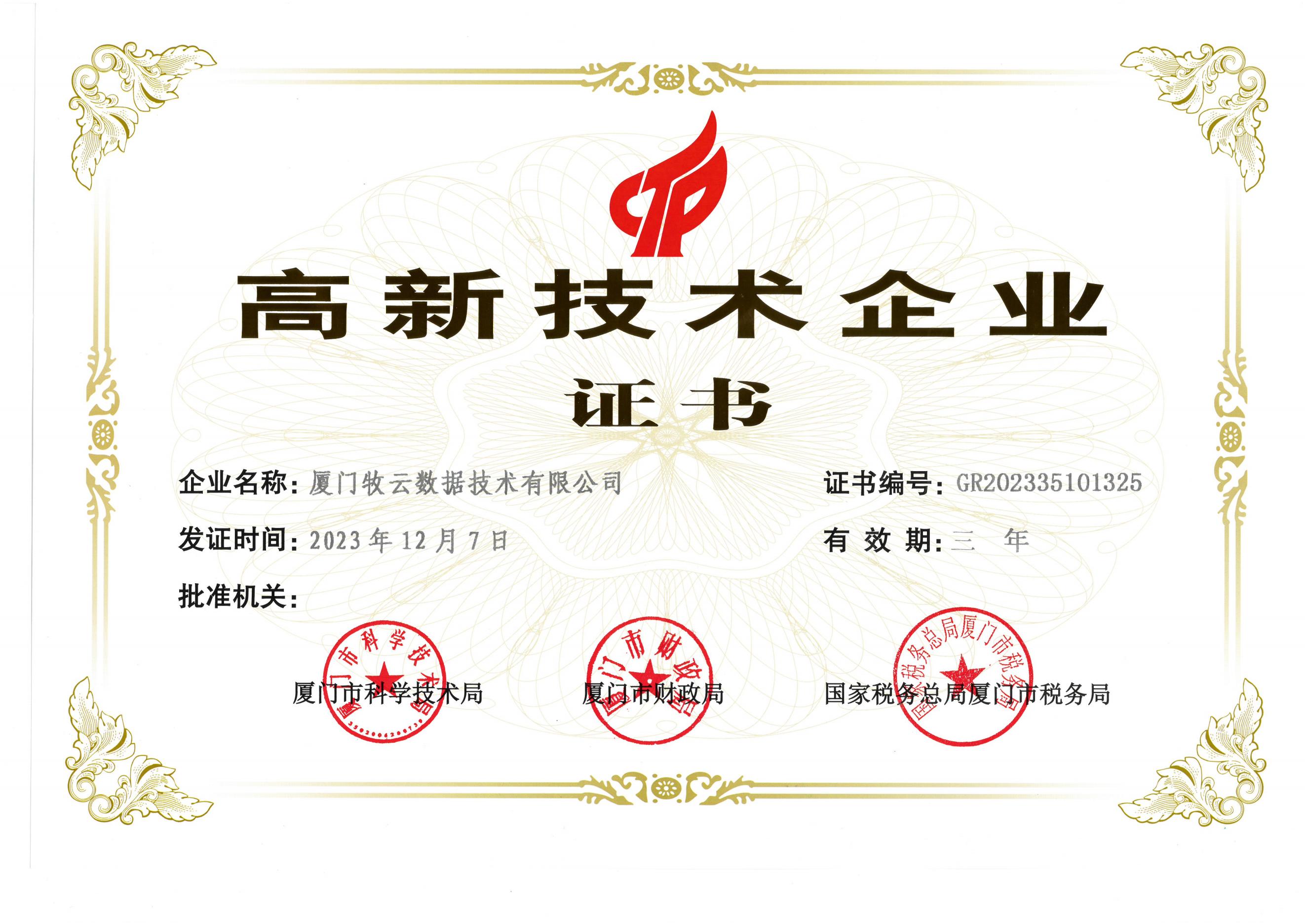 根据《高新技术企业认定管理办法》(国科发火〔2016〕32号)和《高新技术企业认定管理工作指引》(国科发火〔2016〕195号)有关规定,近日,厦门市认定机构对2023年认定报备的第二批高新技术企业进行备案公告,厦门牧云数据技术有限公司(以下简称“牧云数据”)顺利通过高企复审认定。